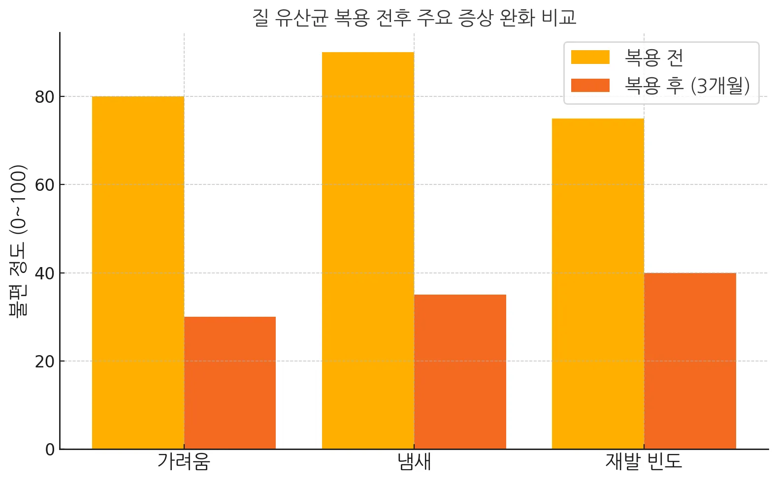 유산균 복용 전후 증상 완화 비교